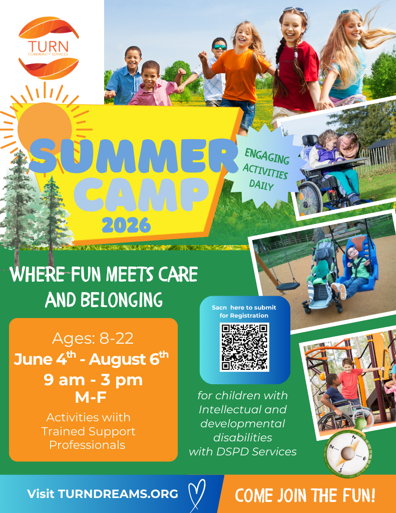Summer Camp offers ongoing learning opportunities, outdoor discovery, and community experiences for people with intellectual disabilities, ages 8-22.